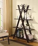 The contemporary X" design offers a stylish solution to store book or any other display pieces in your home. Four shelves are stacked from larger to smaller for plenty of storage space. This bookcase is usually in stock and ships to you and no additional charge.Dimensions: "X" bookcase )Coaster model 800267) 47.25"L x 14.25"D x 59"H" Read more
