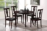 The Sullivan Dining set is our latest introduction for a 5 piece dining set. The wood dining table and chairs are finished in the popular cappuccino color finish. Notice the stylish curves on the table legs and chair which compliment the chair back. The seat cushion is a practical black vinyl for easy cleaning and durability. We ship the dining set using a freight company which delivers to your door in 4-7 business days after shipment. You will be contacted by phone to arrange an appointment between 9am-5pm M-F. This is such a convenient way to buy your dining furniture. Take advantage of this major introductory special. We challenge you to find a better quality and style dining set at this price! Read more